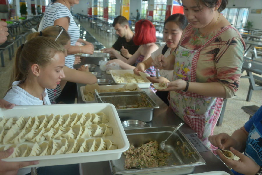 下午2点30,在学校北食堂一楼开展了一堂别开生面的实践课——包饺子。首先由旅游专业孙海琴老师现场给乌克兰留学生们讲解了包饺子的要领,然后孙老师和食堂的面点师傅一起给学生们示范,接下来便到了自由发挥的时刻,不一会儿乌克兰同学便展示了丰富的想象力,环形饺子、方形饺子、十字形的饺子小巧玲珑,想法新奇,创造力十足,引得大家赞叹不已。乌克兰同学还为我们包了乌克兰式的饺子,双方互相学习,其乐融融,切实做到了教学做一体化,开启了酒店管理专业教学之门。期间经贸学院副院长周荣虎来到课堂高度赞扬了乌克兰同学的学习精神。最后师生们一起分享了本节课包出来的饺子,香气四溢,回味无穷。