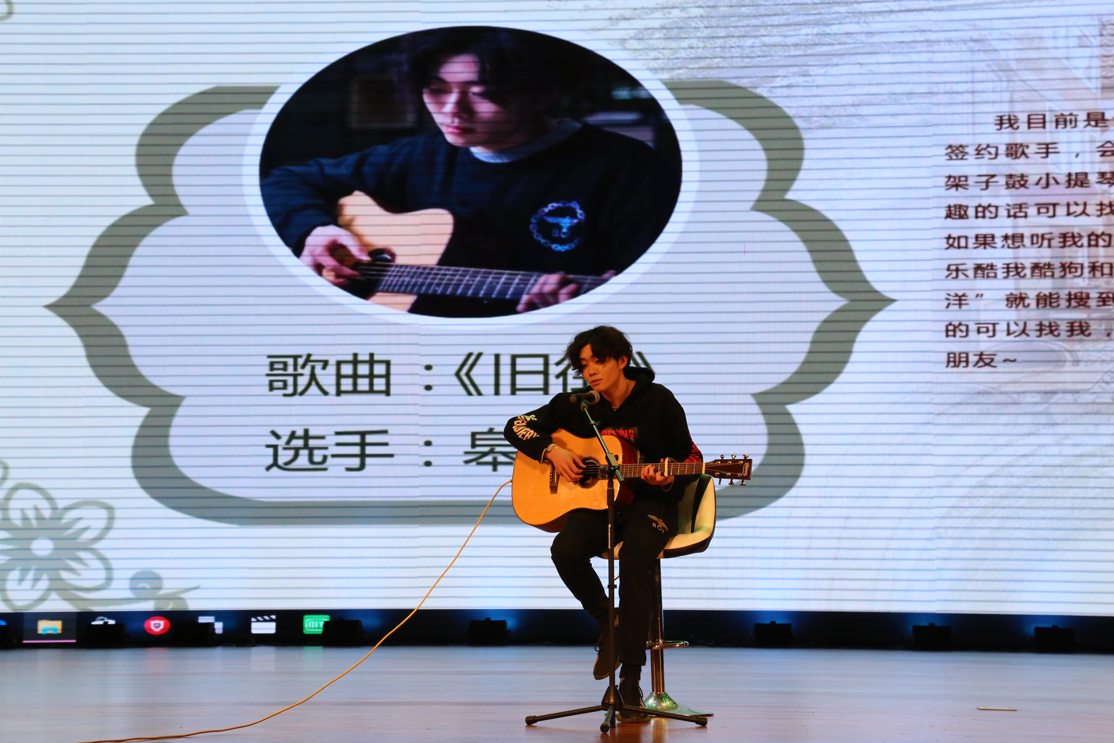 比赛在民族舞《keep moving》中拉开帷幕,台下的同学们热情高涨,呐喊着为每一位选手加油。温暖贴心的原创歌曲《旧街》、柔情似水的吉他弹唱《一生所爱》、抒情忘情的《红玫瑰》、异域韵味的《let’s go》和俏皮欢快的《别找我麻烦》……一首首悦耳动听的歌曲如一幅幅的水彩画缓缓呈现在观众面前。整场比赛为大家带来了一场富有青春风采的视听盛宴,掌声此起彼伏,让观众心醉其中,意犹未尽。