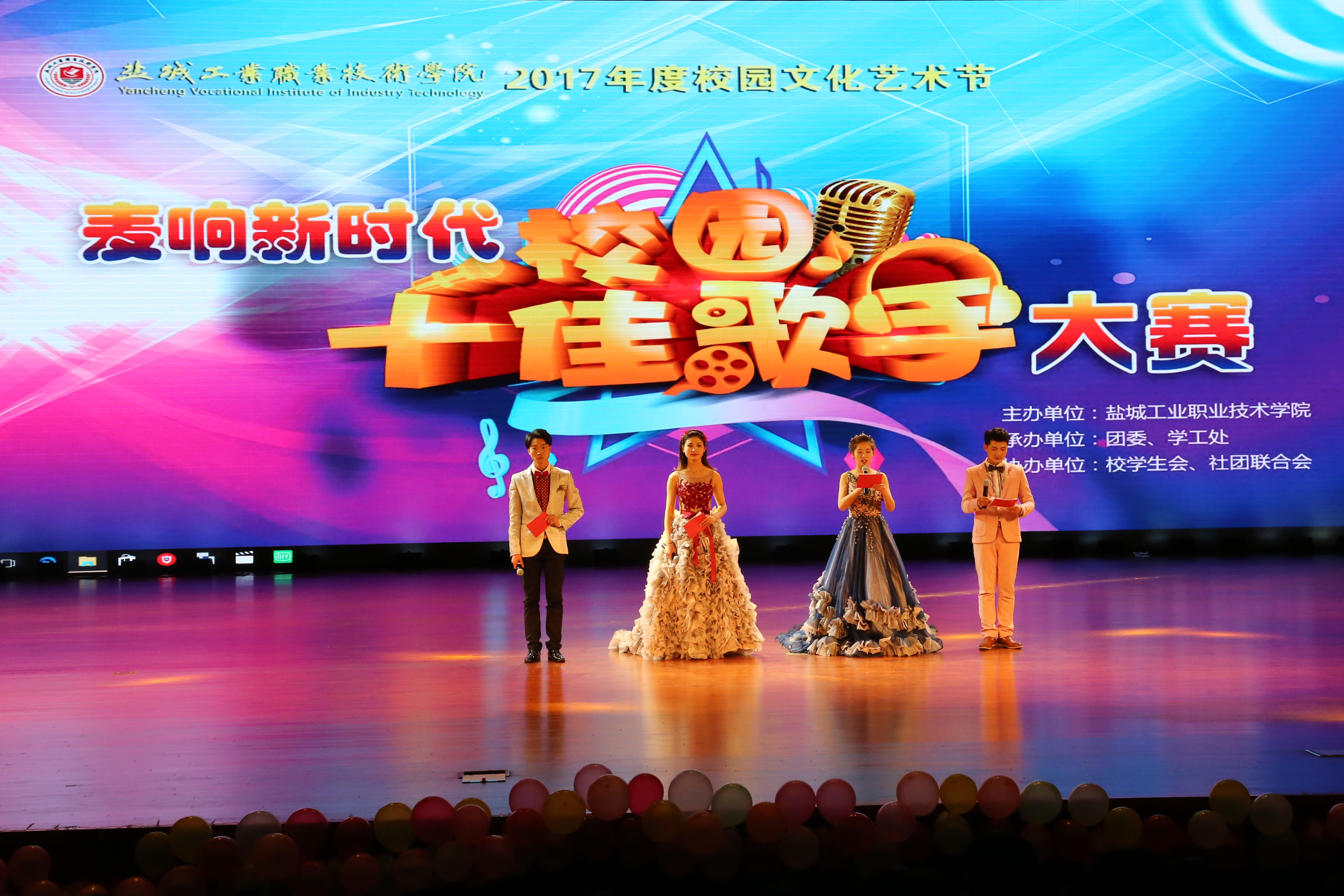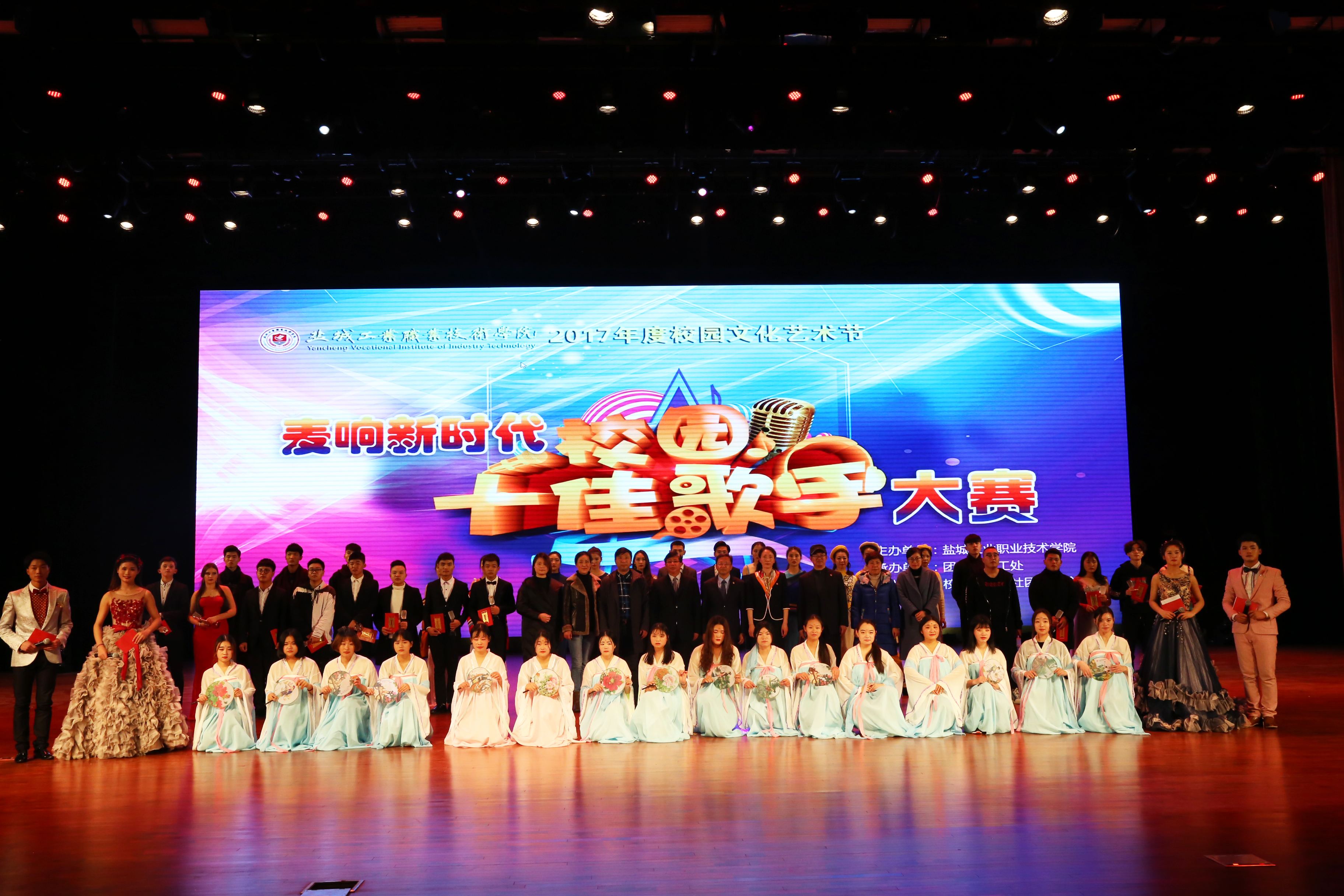 12月28日,由校团委主办、学生会承办的2017年校园文化艺术节“麦响新时代”校园十佳歌手总决赛在大学生活动中心剧场举行。校党委书记姜朋明,副校长孙卫芳、刘必千,纪委书记徐伯静,各二级学院、各部门主要负责人和1500多名师生观看了比赛。担任本次大赛的评委有盐城市音乐家协会副主席、盐城师范学院艺术教育中心副主任卢晓进,盐城师范学院音乐学院副教授刘丽娟,盐都区音乐家协会主席邵云,盐城幼儿师范高等专科学校大学生艺术团合唱团团长徐莉、副团长朱明。