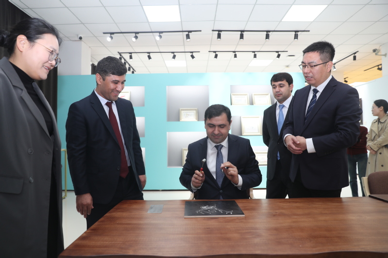 2025年11月5日-6日,塔吉克斯坦丹加拉国立大学(Dangara State University)代表团在校长海罗佐达・舒克鲁洛(KHAIRZODA SHUKRULLO)的带领下一行3人来校访问交流。校长刘玉申、副校长王曙东,国际教育学院院长、教务处副处长吴建国,纺织服装学院、商学院、汽车与交通学院负责人出席座谈会。座谈会由副校长王曙东主持。